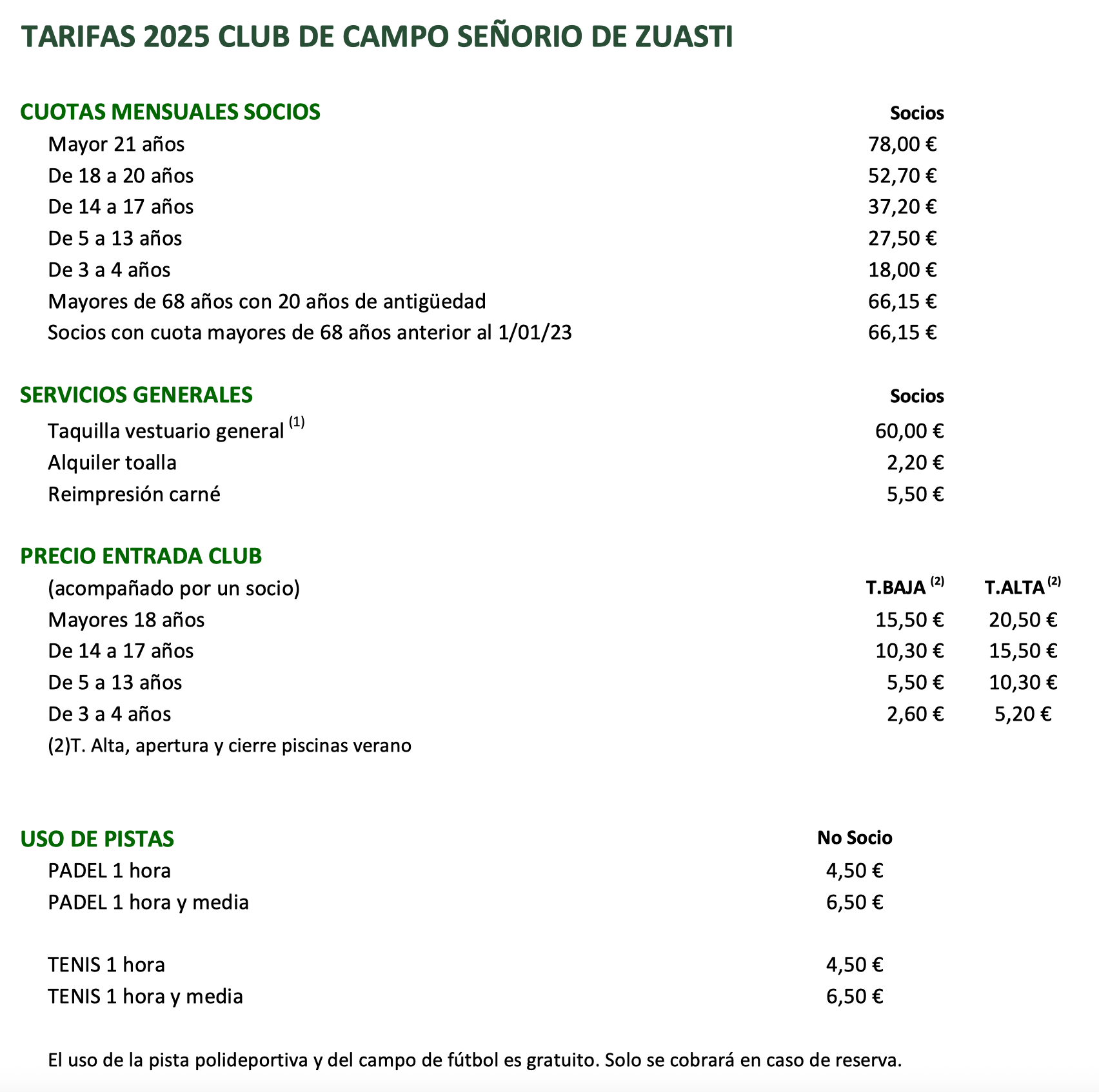 Ponemos a tu disposición una breve explicación de precios por categorías y grupos, si tienes cualquier tipo de duda puedes ponerte en contacto con nosotros.